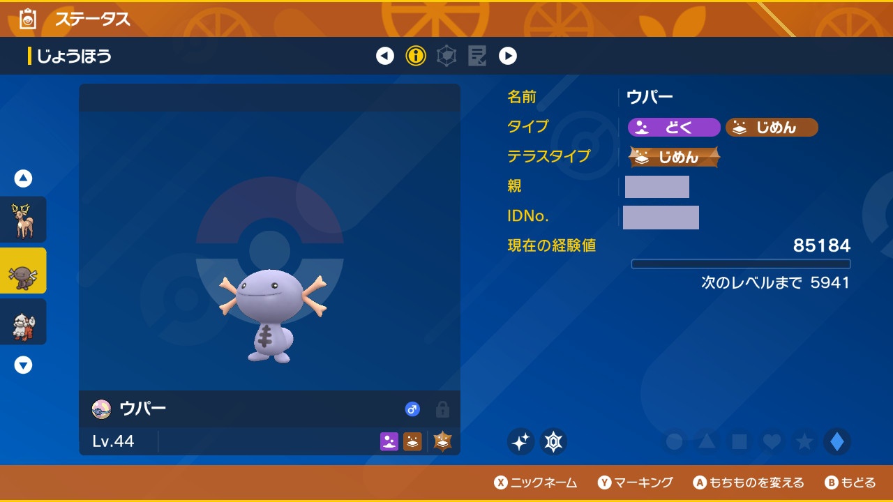 じめんタイプ大量発生 じめんタイプのポケモンが大量発生中!ディンルーのレイドをした日、ついでだからと家族と色違いウパちゃん探しにチャレンジ。証もちのコはたくさん見掛けるんだけど色違いっぽいのはなかなかいないな…と思っていたところ、食事効果が終わる1分前くらいにひょっこり出てきてくれました。原種の色に少し近いんですねえ。かわいい!いずれドオーに進化させたいなーとは思いつつ、もう少しこの状態を楽しんでおこうと思います😊