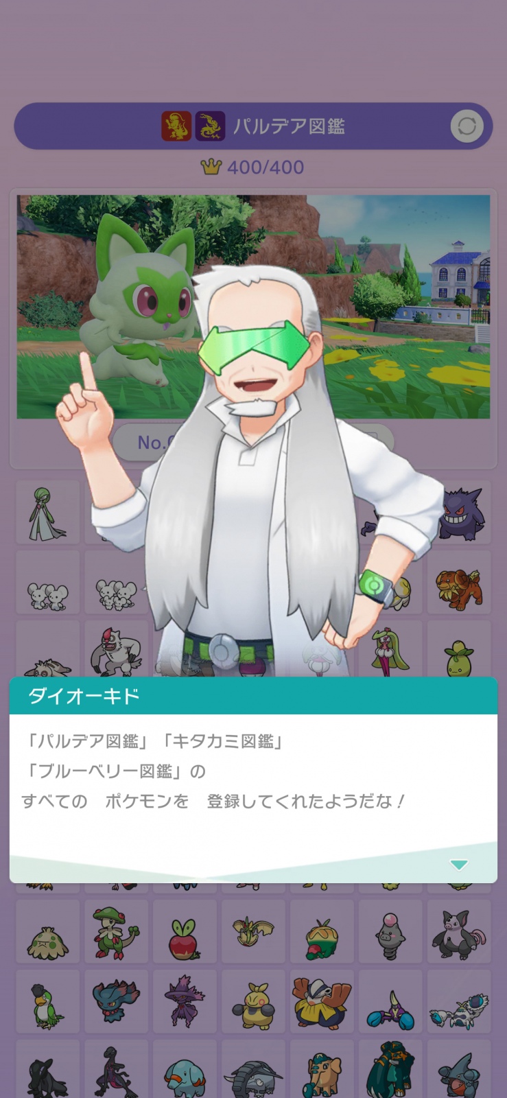 SV:ソフト図鑑完成 SVのソフト図鑑コンプリート達成✨HOME図鑑の場合、【ソフト内でゲットした】ことが対象になるそうなのでほかシリーズから連れてきて図鑑登録をしたポケモンたちは改めてパルデア・キタカミ・ブルーベリー学園を回りながらゲットしなおしたりしていました。ブルべがまだ埋まっていない状態だったのですがようやくここも完了!ちなみに、野生でゲットするのがちょっと大変かも?と思ったのはアチャモとヒノアラシです。やった…ついにやったよ…
